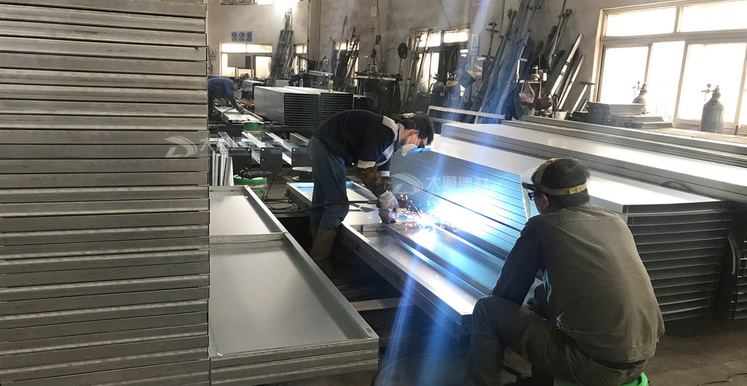 【圍擋入庫】是將生產完成的圍擋進行入庫,進入發貨狀態,在經過前面四種工藝材料切割、墻板折彎、立柱焊接、烤漆后,圍擋已幾乎完成,這時就需要將生產好的配件進行入庫存放,大通建材在生產產區旁新建了占地面面積約5000平米的發貨廠區,達到客戶下單即可安排發貨效率。